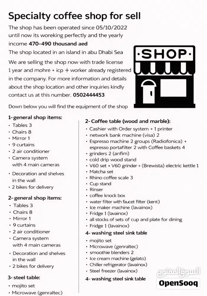We are selling the shop now with trade license 1 year and mohre + icp + worker already registered in the company