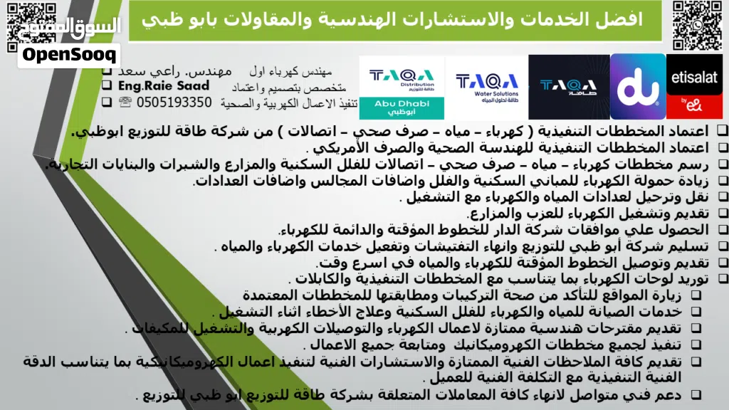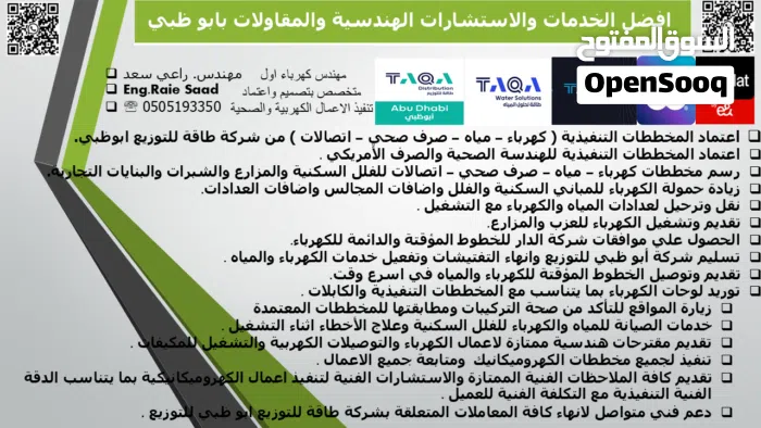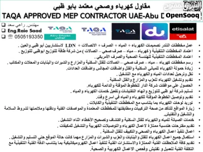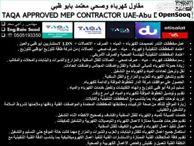 مقاول كهرباء وصحي معتمد ابوظبي (الامارات) taqa approved electrical contractor abu dhabi-uae أبو ظبي
