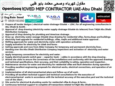 مقاول كهرباء معتمد ADDC-TAQA اعتماد مخططات كهرباء واتصالات ومياه صرف صحي وكلين اوت للفلل السكنيةUAE